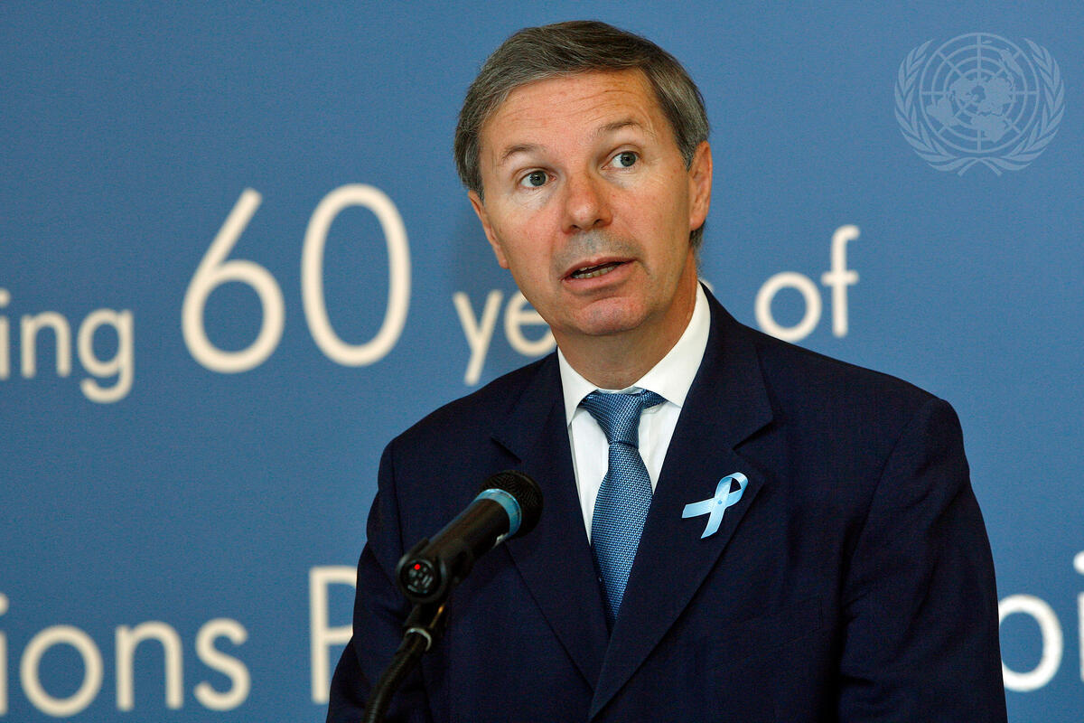 Jean-Marie Guéhenno, Under-Secretary-General for Peacekeeping Operations, addresses the opening of a multi-media exhibition marking the sixtieth anniversary of the United Nations Peacekeeping.