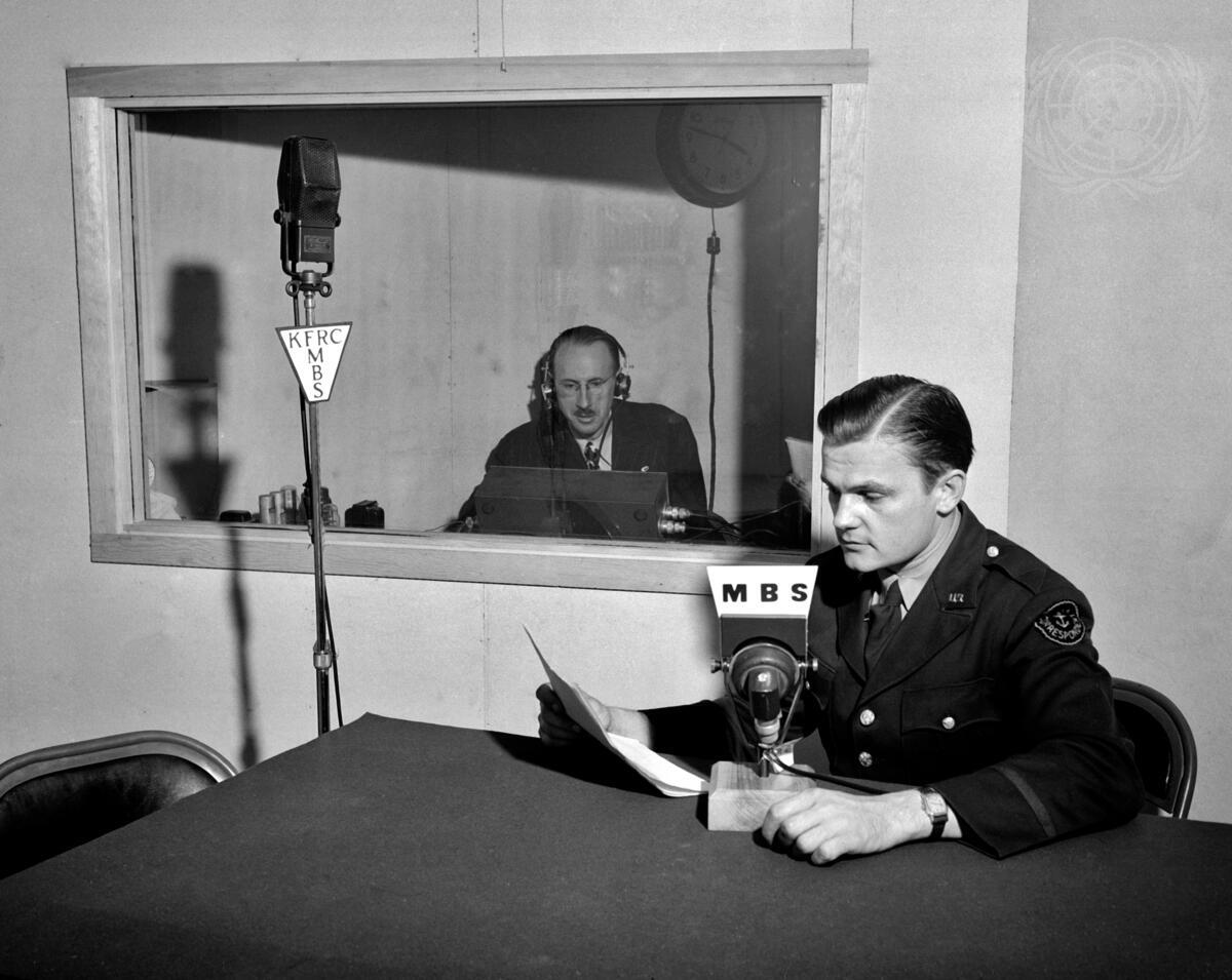 Arthur Trimm in the Mutual Broadcasting System Studio in the Veterans Building. [exact date unknown]