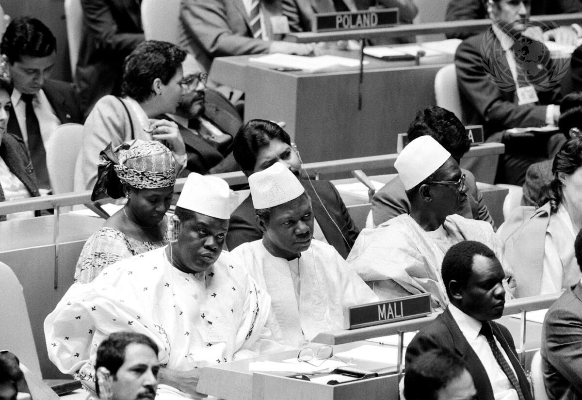 The delegation of Mali headed by Alioune Blondin Beye (left), Minister for Foreign Affairs, attending the morning meeting of the General Assembly on 24 October.