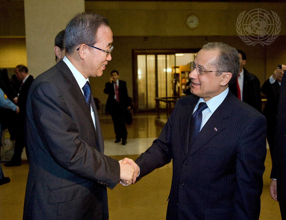 Secretary-General Ban Ki-moon (left) meets with Abdelwaheb Abdallah, Minister for Foreign Affairs of Tunisia.
