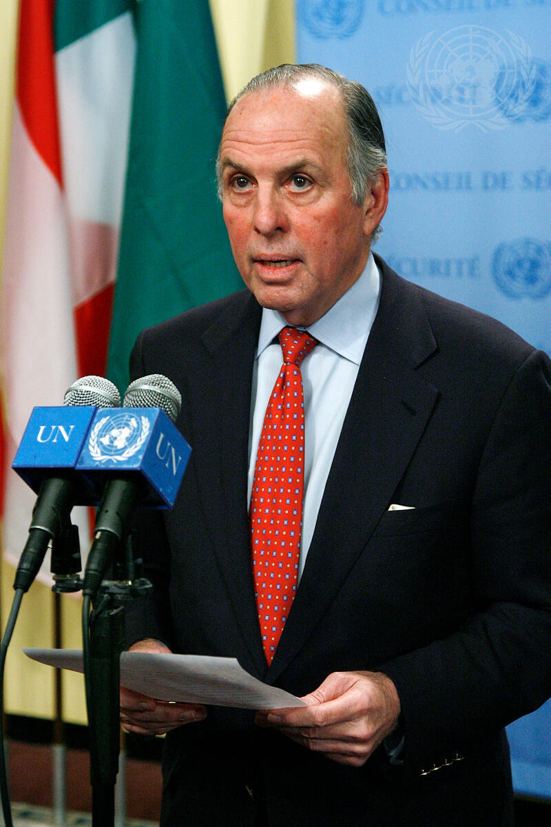 Ricardo Alberto Arias, Permanent Representative of Panama to the United Nations and President of the Security Council for February, briefs journalists following a closed meeting of the Security Council on the current situation in Kosovo.