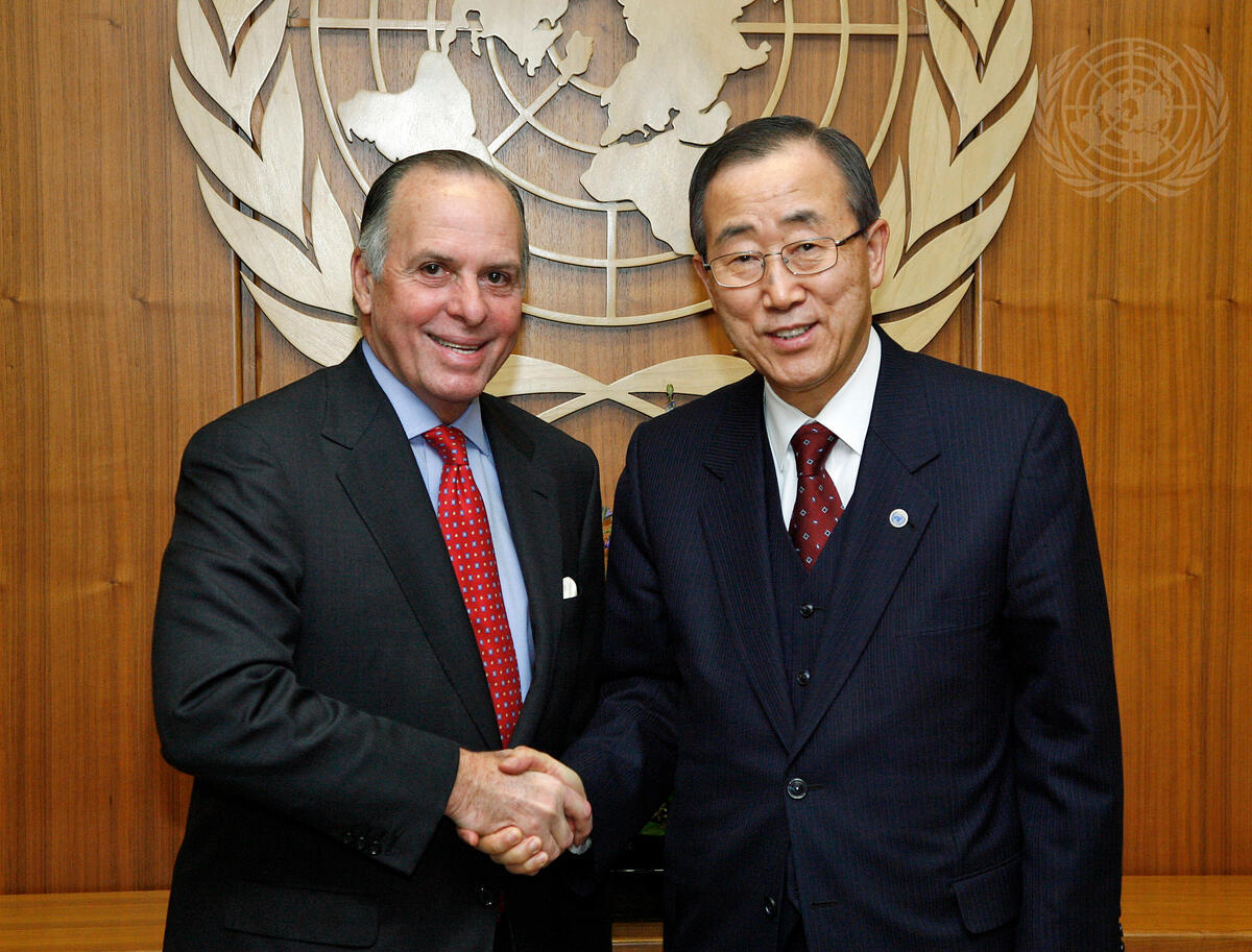 Secretary-General Ban Ki-moon (right) meets with Ricardo Alberto Arias, Permanent Representative of Panama to the United Nations and President of the Security Council for February.