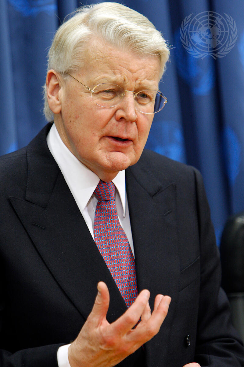Ólafur Ragnar Grímsson, President of Iceland, addresses a press conference on climate change, following a panel discussion on ""How to Prevent Climate Change - A Road Map to Success.""
