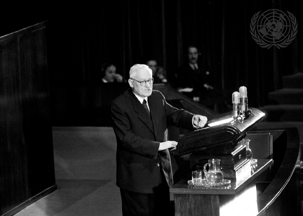 Trygve Lie Addresses Assembly after his Term Was Extended to 1954