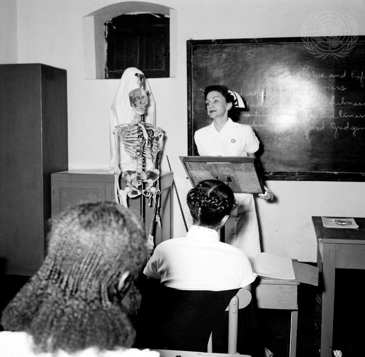 Miss Evelyn Matheson of Toronto, Canada, giving a lecture to the seniors at the Nurses' Training Centre, Khartoum.