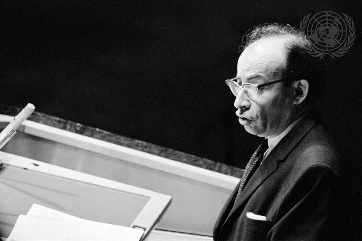 Among the speakers at the morning meeting was Dr. Raúl Roa, Cuba’s Minister of State, who is seen here at the speaker’s rostrum addressing the Assembly.