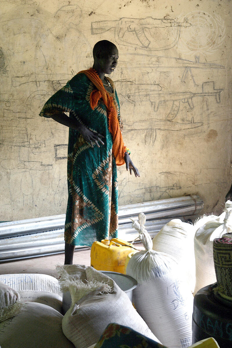 A member of a group of 25 refugees recently repatriated by the United Nations High Commissioner for Refugees (UNHCR) from Kauma refugee camp in Kenya is pictured at his new home back in Sudan. Some of the younger members of the group were born in Kakuma and were setting foot in Sudan for the first time.