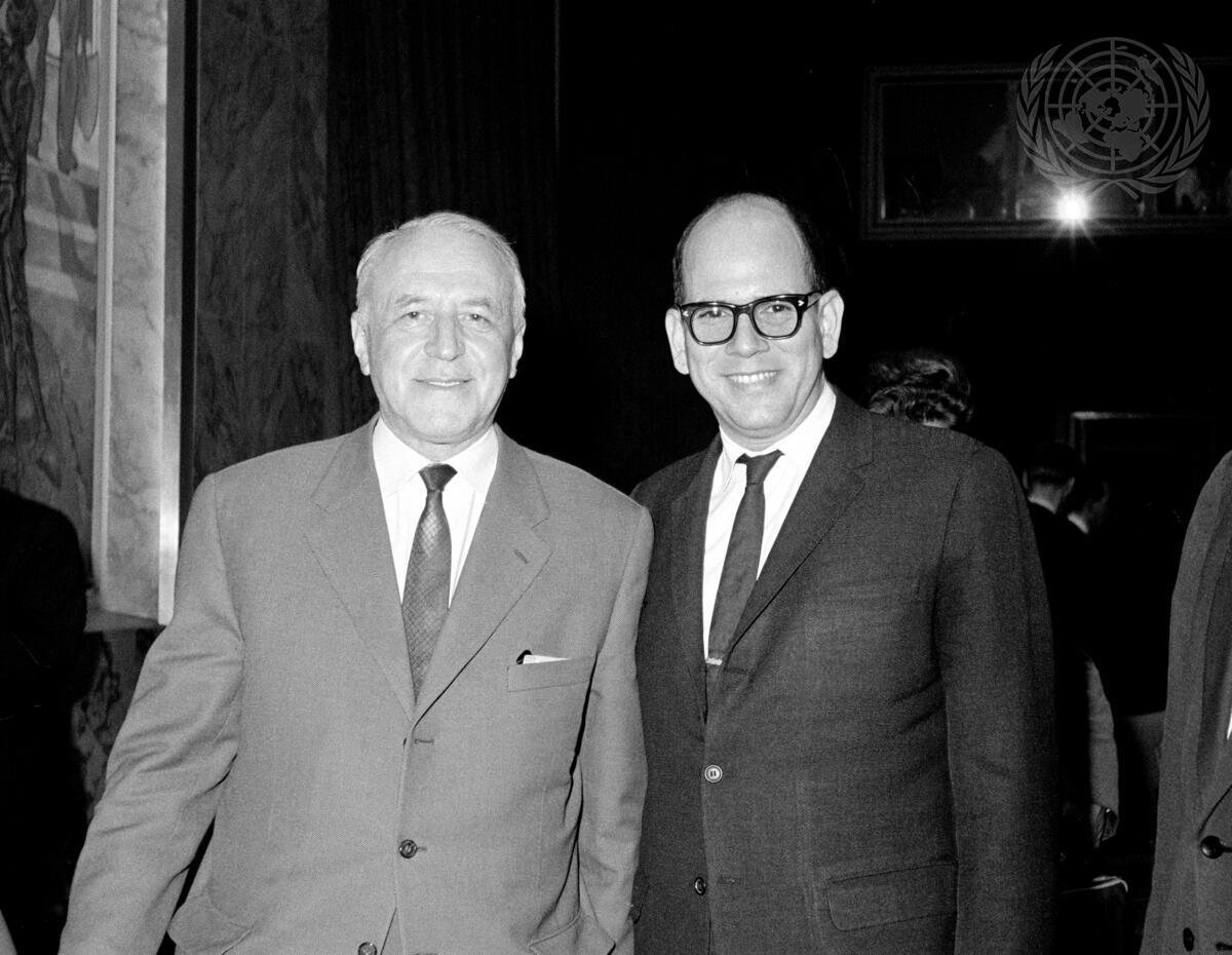 Mr. Valerian A. Zorin (left) of the USSR, President of the Council for October, and Dr. Mario Garcia-Inchaustegui of Cuba, are seen here, shortly after the meeting had adjourned.