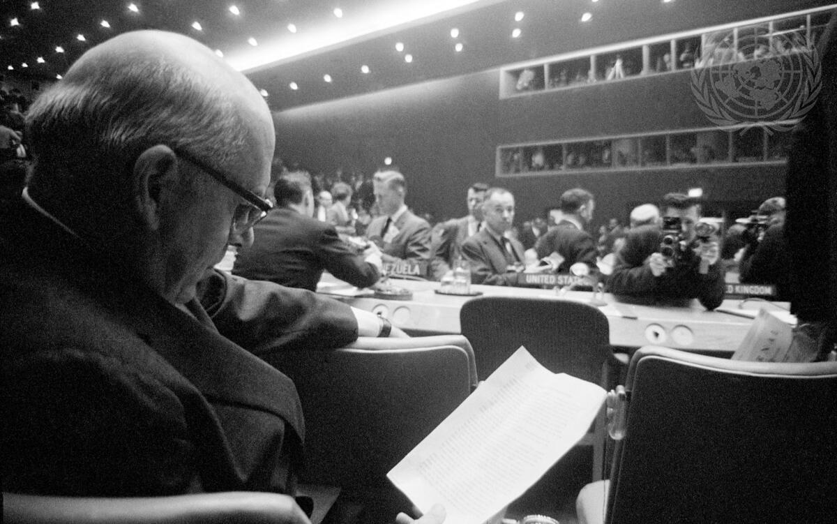 Reading a document is Mr. John J. McCloy (United States), Special Adviser to Ambassador Adlai E. Stevenson, the Permanent Representative of the United States to the UN.