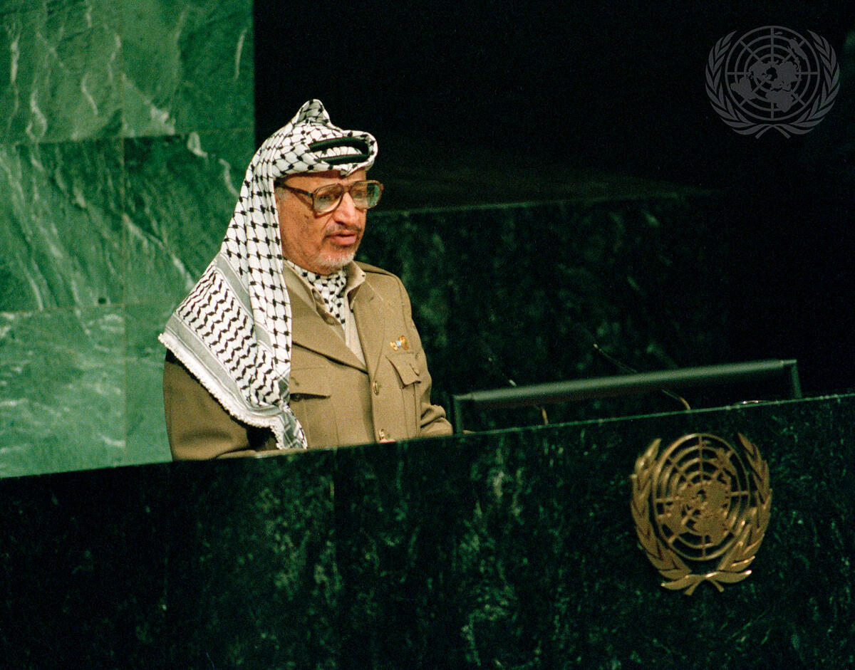 Yasser Arafat, President of the Palestinian Authority and Chairman of the Executive Committee of the Palestine Liberation Organization (PLO) addressing the Special Commemorative Meeting in the General Assembly Hall.