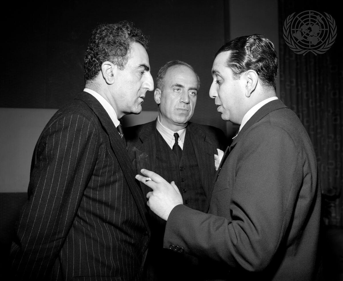 Dr. Charles Malik, left, of Lebanon and Mr. Fouad Ammoun, centre,