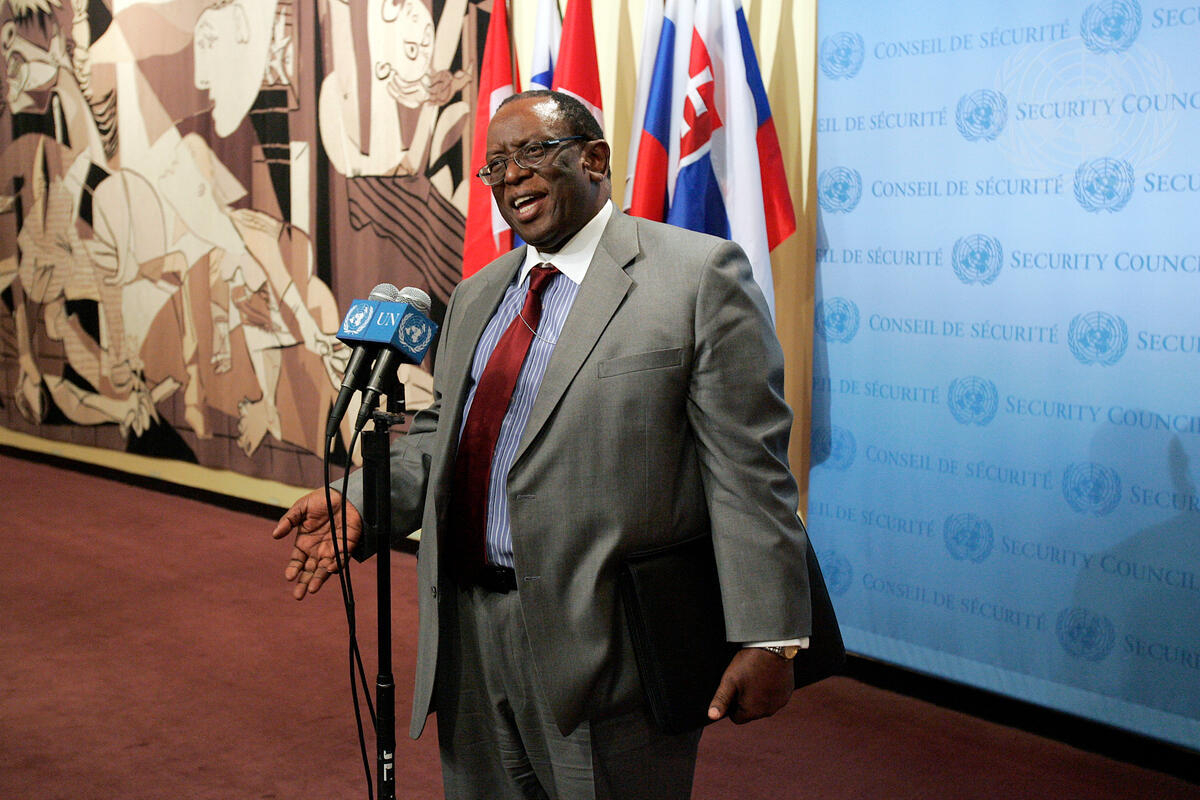 Dumisani Shadrack Kumalo, Permanent Representative of the Republic of South Africa to the United Nations, briefs correspondents outside the Security Council chamber, at UN Headquarters in New York.