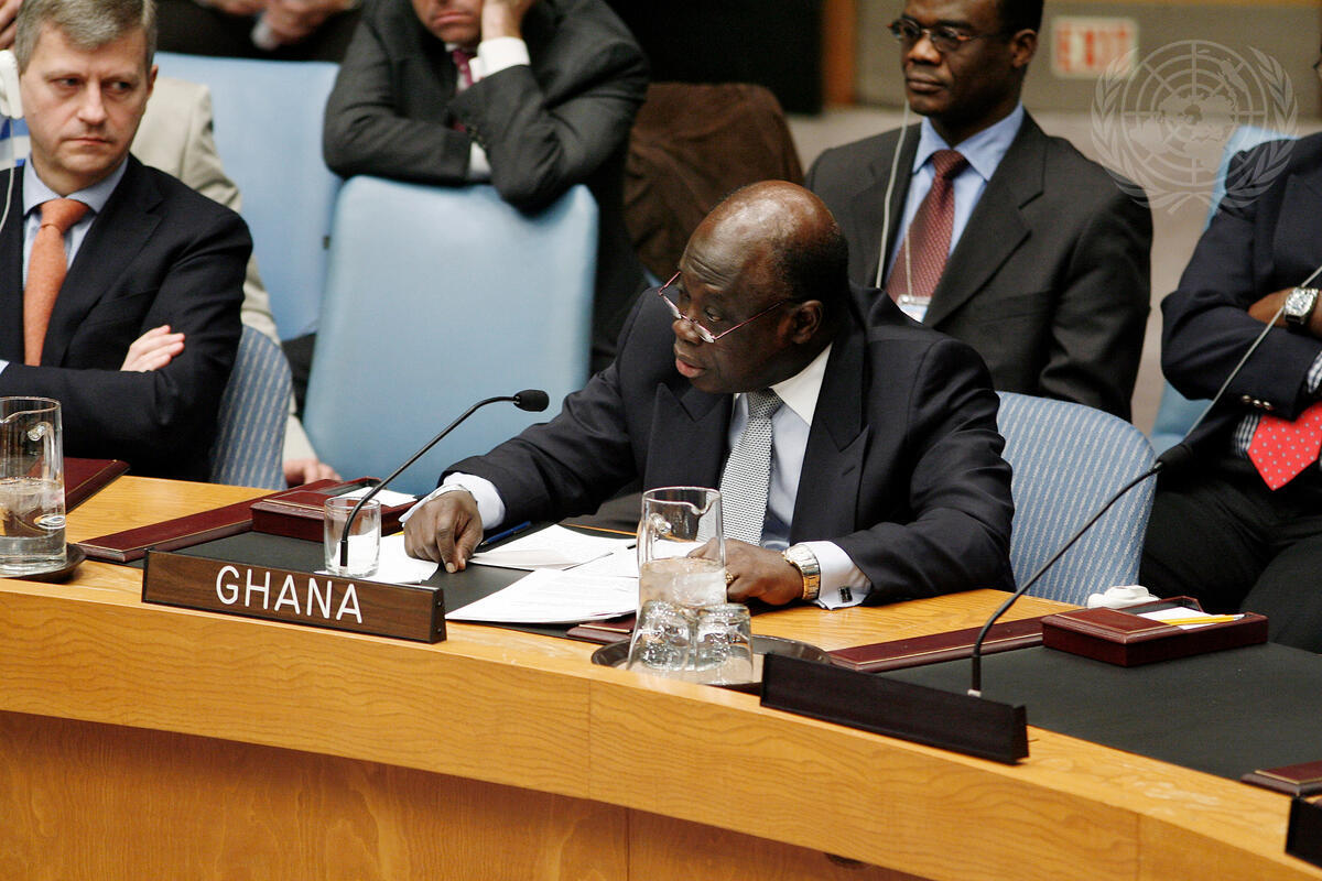 Nana Effah-Apenteng, Permanent Representative of Ghana to the United Nations, addresses the Security Council meeting after the unanimous adoption of a resolution imposing sanction on the Islamic Republic of Iran, at UN Headquarters in New York.