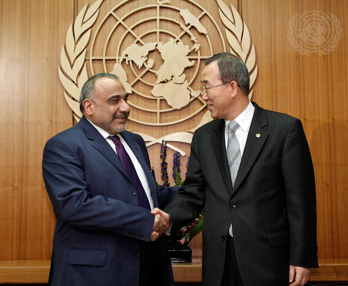 Secretary-General Ban Ki-moon (right) meets with Adil Abdal Mahdi, Vice-President of Iraq, at UN Headquarters in New York.