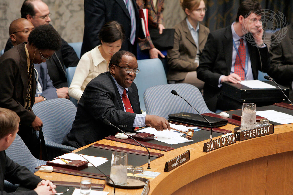 Dumisani Shadrack Kumalo, Permanent Representative of the Republic of South Africa to the United Nations, and President of the Security Council for March, addresses the Council before the unanimous adoption of a resolution imposing sanction on the Islamic Republic of Iran, at UN Headquarters in New York.