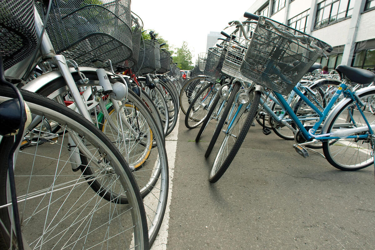 Students park their bicycles in the Hakkaido University auditorium parking lot, as they attend a discussion with Secretary-General Ban Ki-moon on the challenge to global warming and the food crisis.
