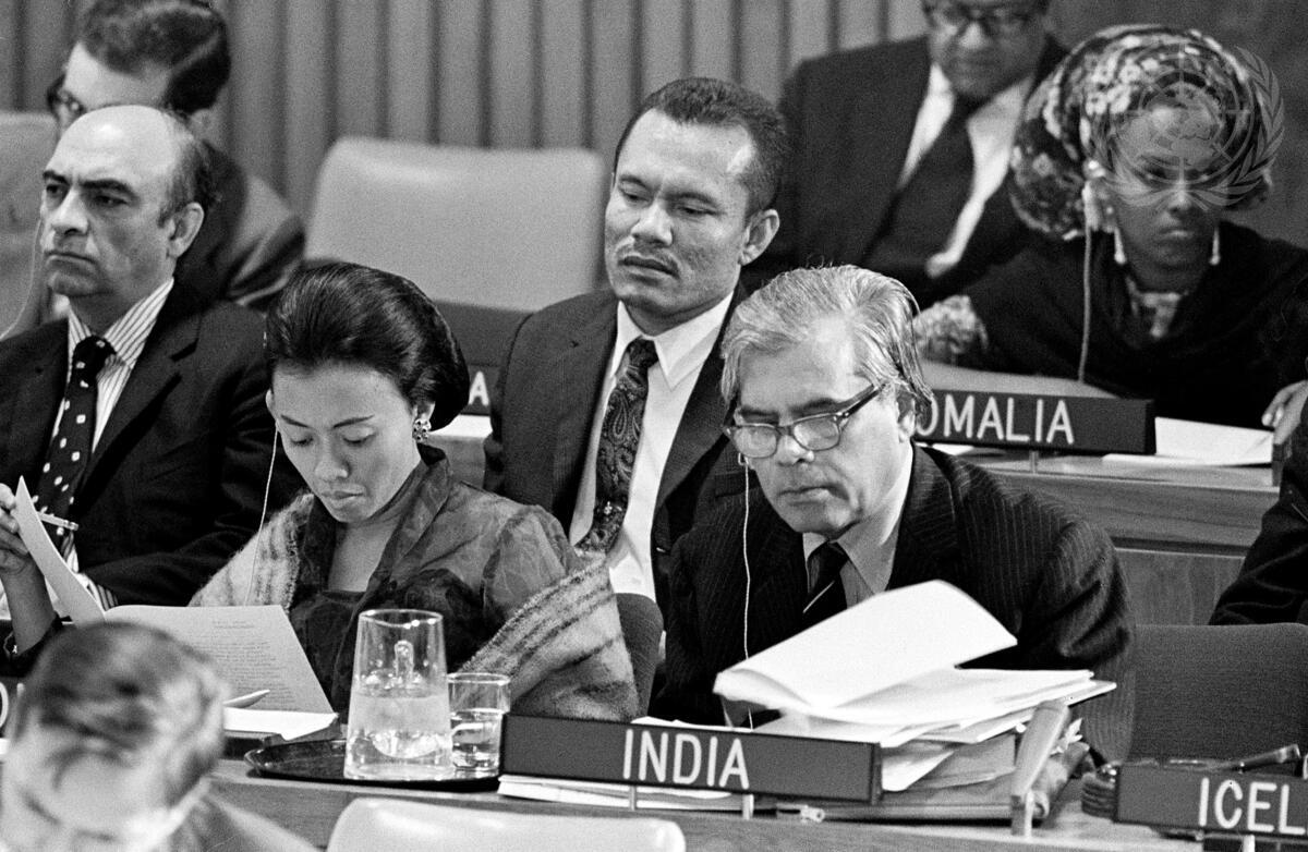 Listening to the debate are Miss Kustijah Prodjolalito (Indonesia) and Samar Sen (India).