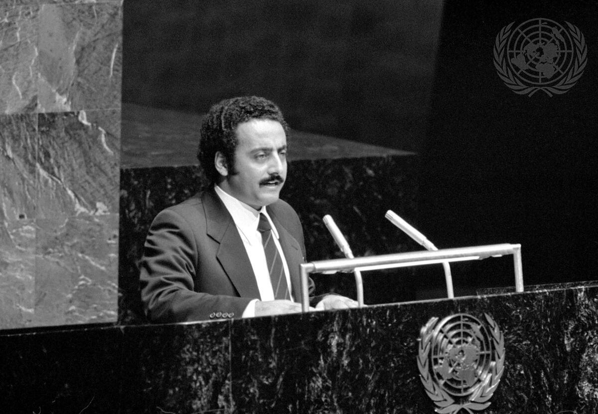 Salem Saleh Mohammed, Foreign Minister of Democratic Yemen, addressing the Assembly on 5 October.