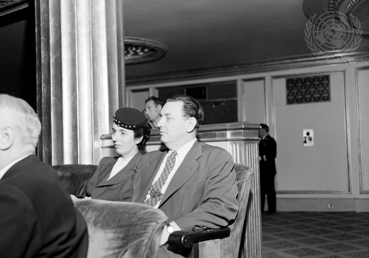 Leon Henderson (USA) in audience at Commission IV meeting in Opera House, May 19.