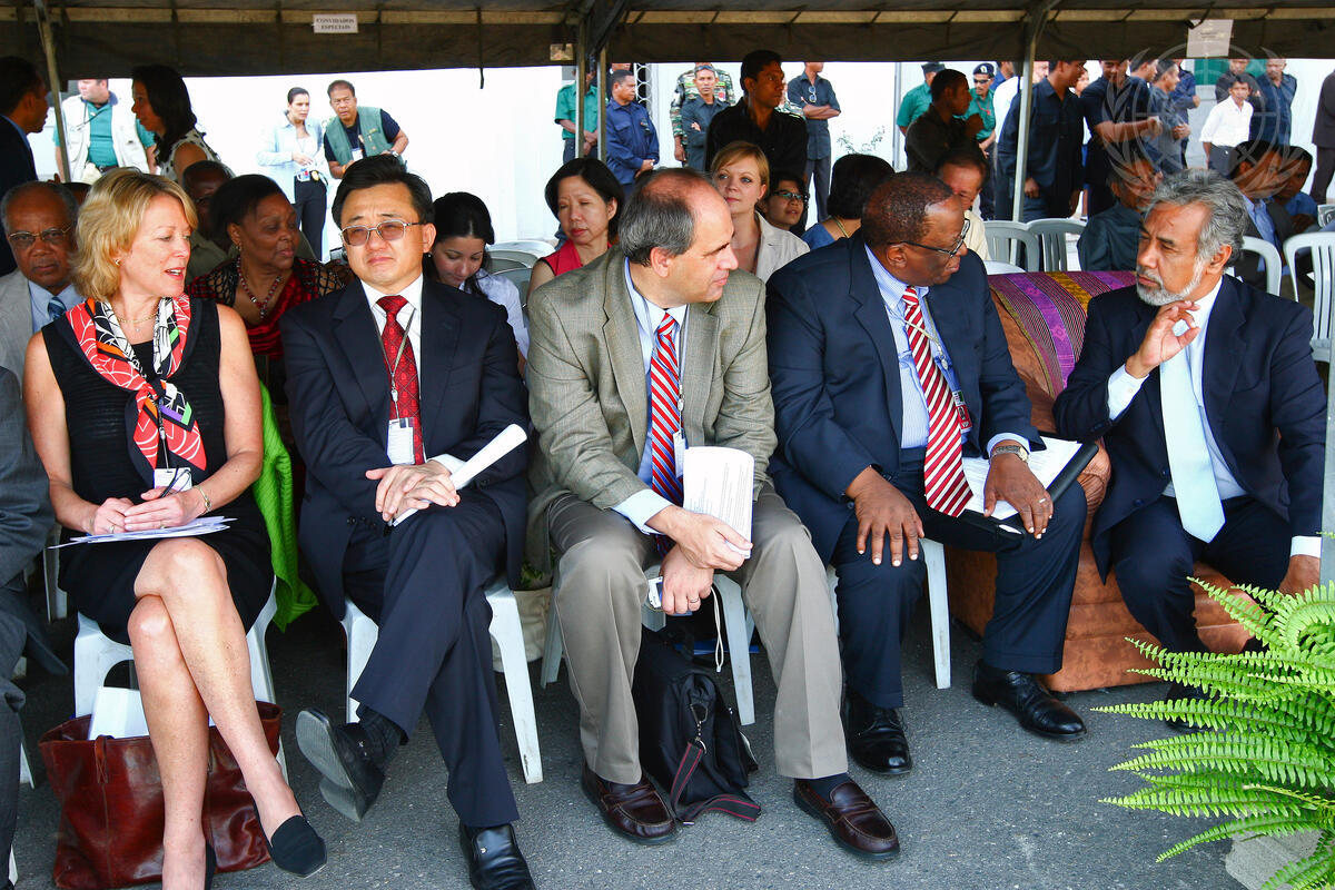 Members of the Security Council Mission attend the Independence Day Celebrations in Timor-Leste. From left to right, front row: Jackie Wolcott Sanders, Representative for Special Political Affairs of the Permanent Mission of the United States to the United Nations; Liu Zhenmin, Deputy Permanent Representative of the People's Republic of China to the United Nations; Peter Burian, Permanent Representative of Slovakia to the United Nations; Dumisani S. Kumalo, Permanent Representative of the Republic of South Africa to the United Nations and Head of the Security Council Mission to Timor-Leste; and Kay Rala Xanana Gusmão, Prime Minister of Timor-Leste.