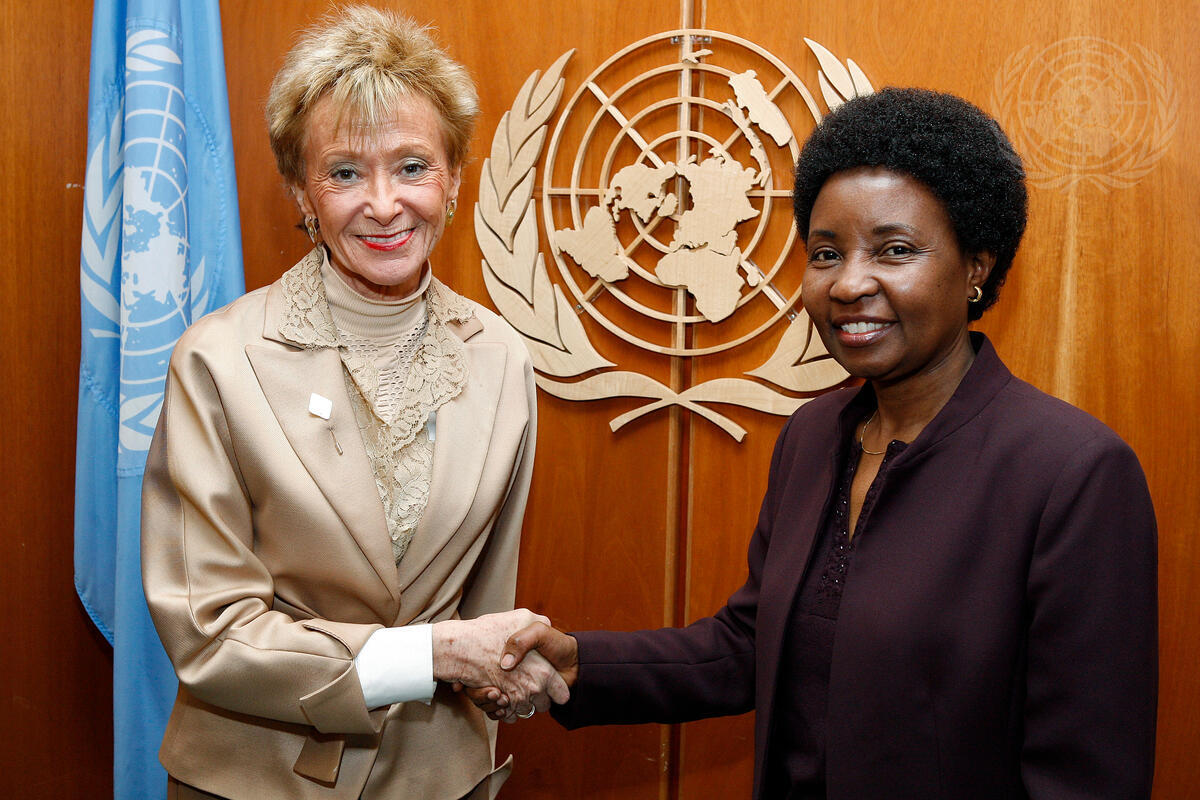 Deputy Secretary-General Asha-Rose Migiro (right) meets with María Teresa Fernández de la Vega Sanz, Vice-President of the Government of Spain.