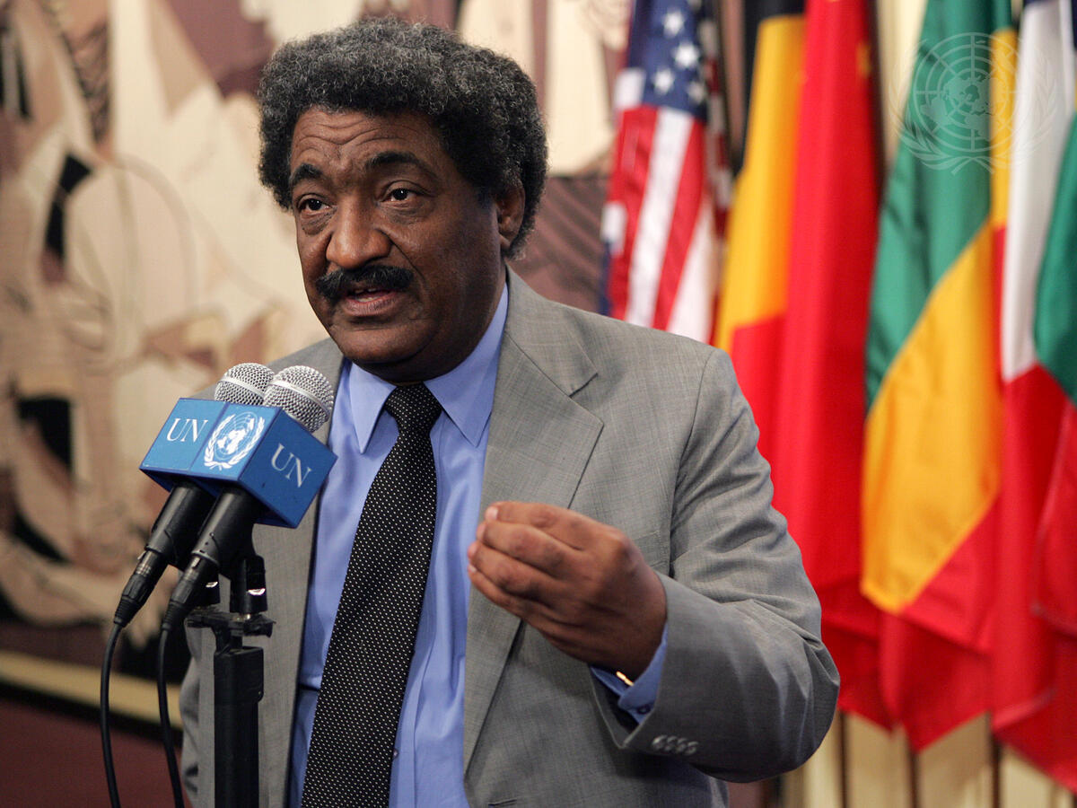 Abdalmahmood Abdalhaleem Mohamad, Permanent Representative of Sudan to the United Nations, talks to news correspondents, following the Security Council meeting on the deployment of the African Union-United Nations Hybrid Operation in Darfur.