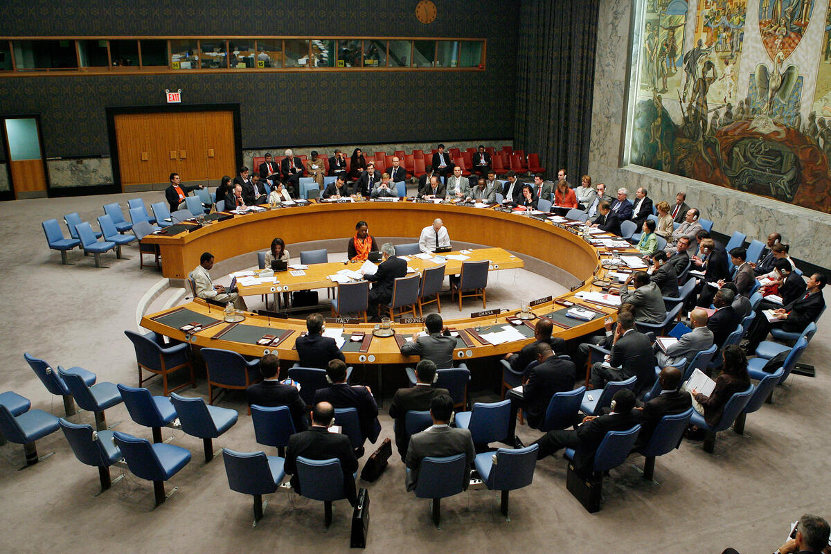 Wide view of the meeting to hear briefings by Chairmen of subsidiary bodies of the Security Council, at UN Headquarters in New York.
