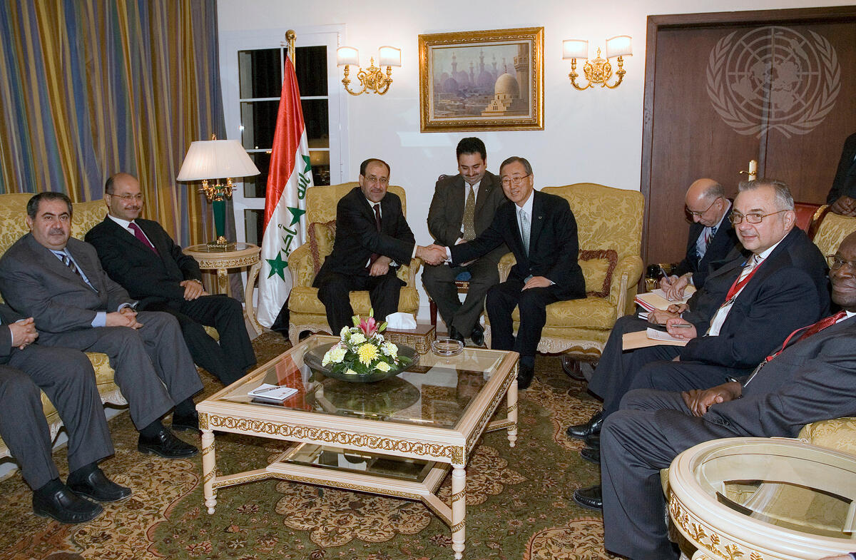 Secretary-General Ban Ki-moon (fourth from right) meets with Nouri Al-Maliki (fourth from left), Prime Minister of Iraq and his delegation in Sharm El-Sheikh, Egypt.