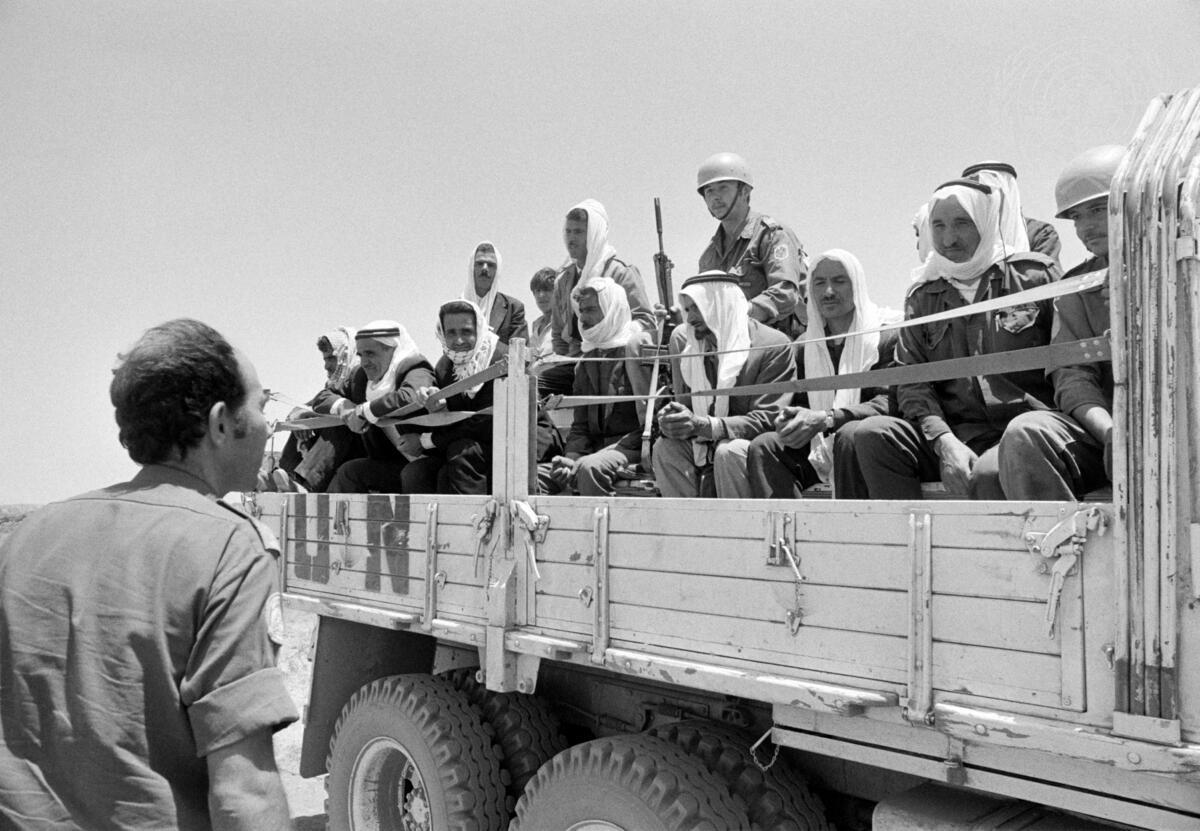 Seventeen Syrian civilians who had entered the UN Buffer Zone during the separation process are seen being transported by members of the Austrian Battalion to UNDOF FHQ at Khan Arabah to be turned over to Syrian Authorities.