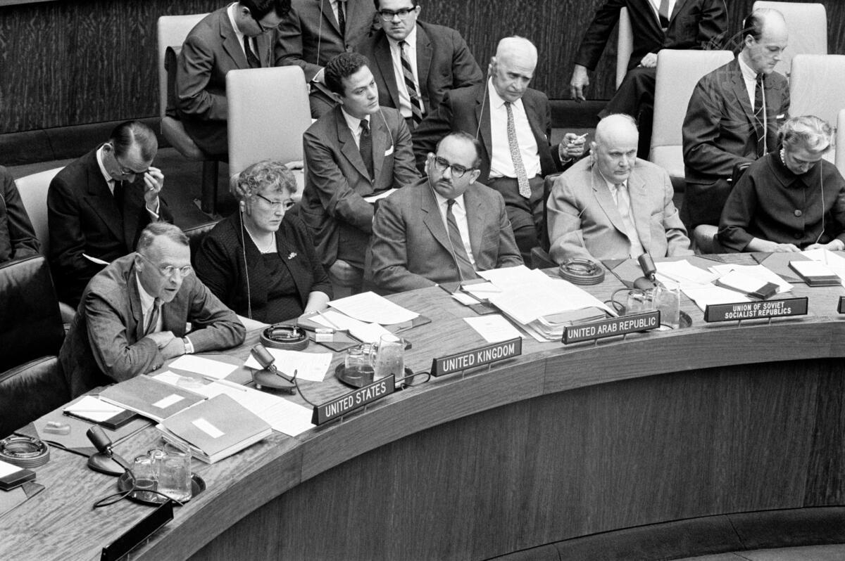 Seen here speaking is Ambassador Francis T.P. Plimpton (U.S.) (lst on l.)