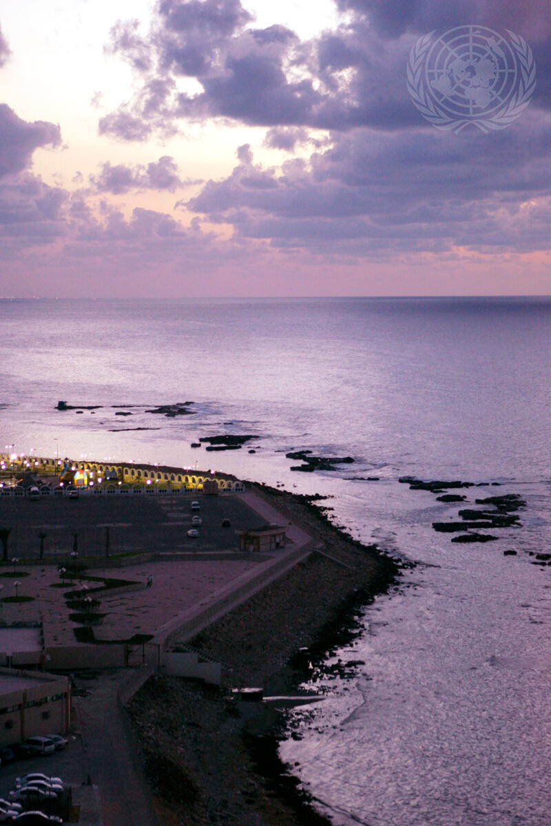 An aerial view of the shore of Tripoli, Libyan Arab Jamahiriya.