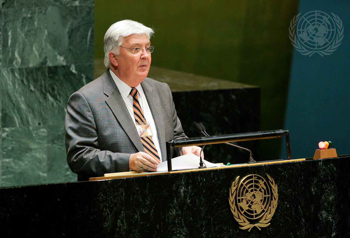 Hjàlmar Hannesson, Chairman of the Delegation of Icelannd, addresses the General Assembly meeting on the High-level Dialogue on International Migration and Development, at UN Headquarters in New York.