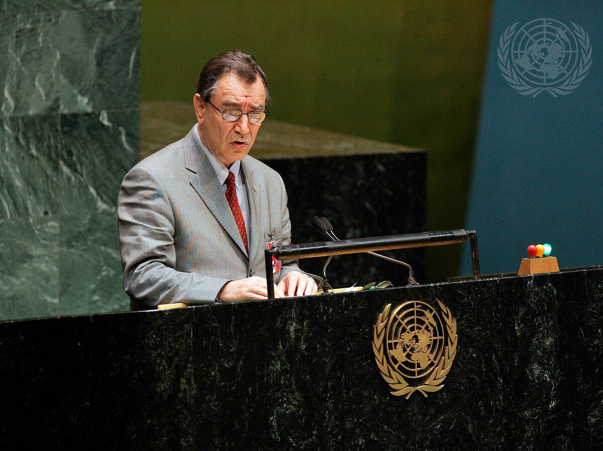 Fernando Zalaquett, Counsellor of the Delegation of Chile, addresses the General Assembly meeting on the High-level Dialogue on International Migration and Development, at UN Headquarters in New York.