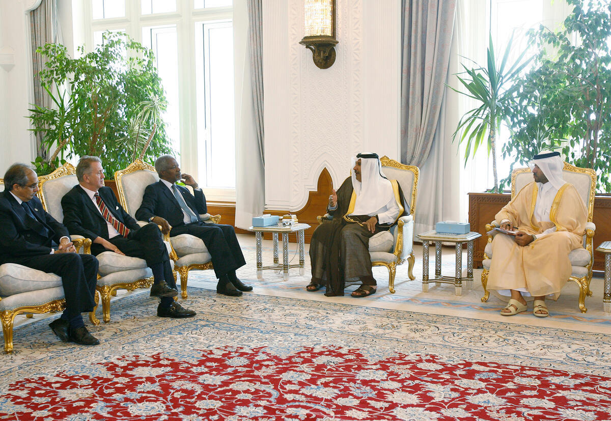Secretary-General Kofi Annan (third from left) meets with Sheikh Hamad Jassem bin Jabar Al-Thani (second from right), First Deputy Prime Minister and Minister of Foreign Affairs of Qatar, Doha.