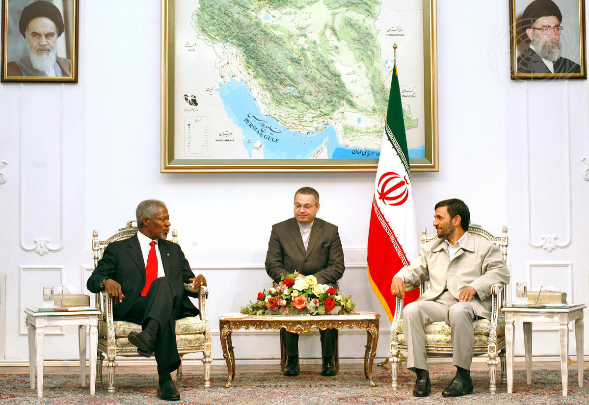 Secretary-General Kofi Annan (left) meets with Mahmoud Ahmadinejad (right), President of the Islamic Republic of Iran, in Teheran.