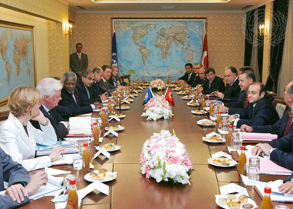 Secretary-General Kofi Annan (centre left) meets with Recep Tayyip Erdogan (centre right), Prime Minister of Turkey, in Ankara, Turkey.