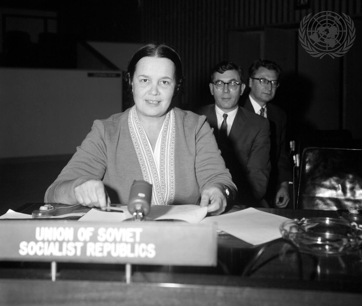 Mrs. Z. V. Mironova, Deputy Permanent Representative of the USSR to the U.N., photographed in the conference room as she attended this afternoon's meeting of the General Assembly's Third (Social, Humanitarian and Cultural) Committee.
