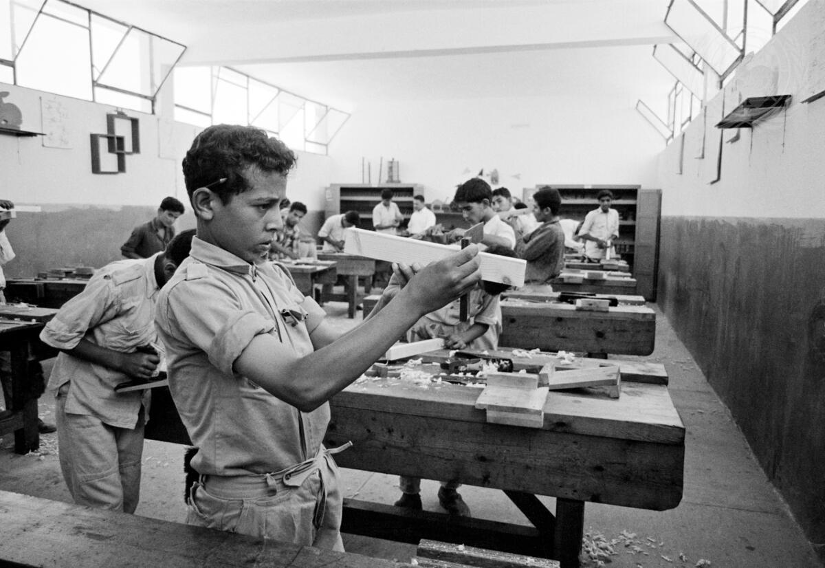 Young refugees are seen here at work in the woodwork class of the elementary school of Ein Sultan camp in Jericho, Jordan.