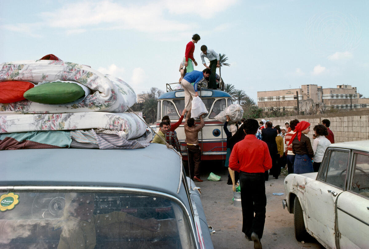 Lebanese refugee preparing to leave the Golf Course Refugee camp in Beirut for their homes in Southern Lebanon.