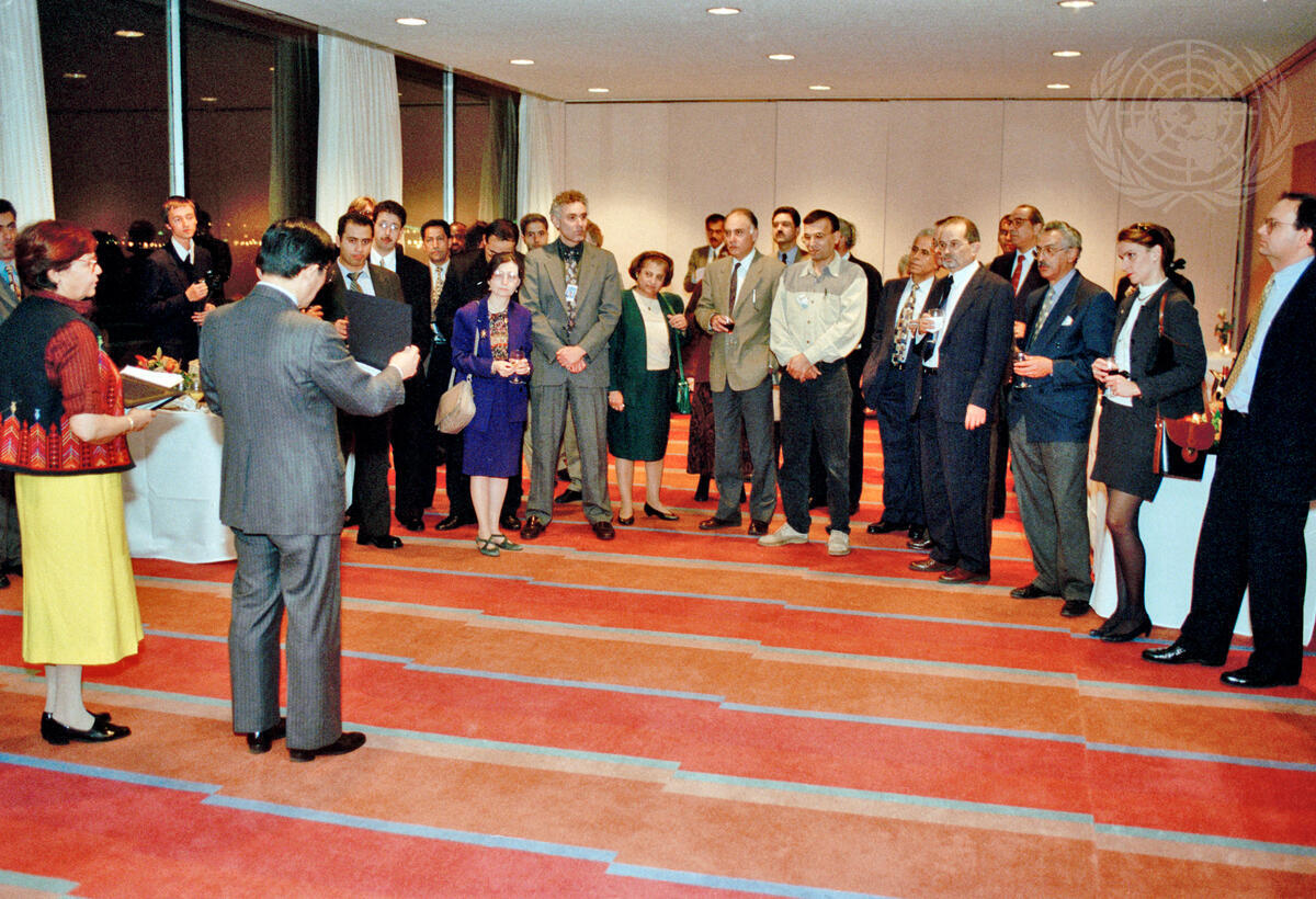 Farewell reception honours participants in the 1988 Palestinian Media Practitioners Training Programme of the Department of Public Information