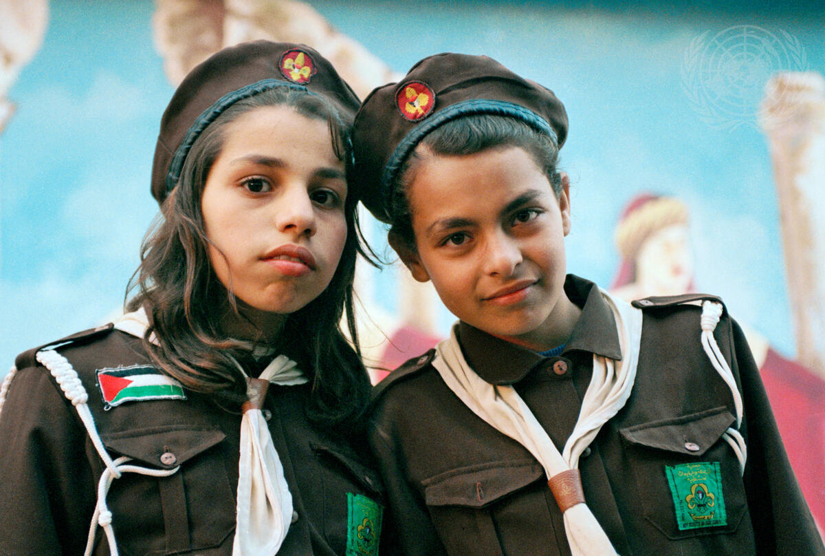 Boy Scouts and Girl Guides welcome Secretary-General Kofi Annan during his visit go Gaza.