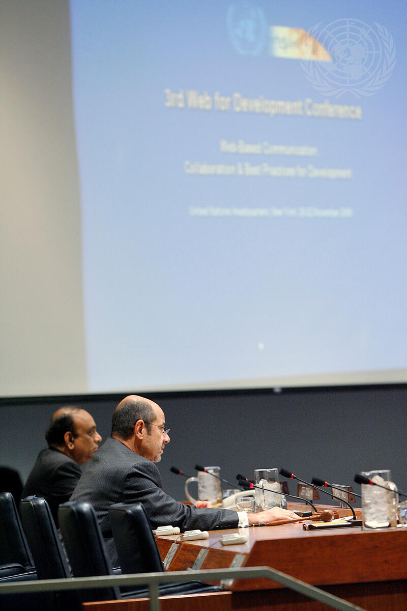 Ahmad Fawzi (right), Director of the News and Media Division in the United Nations Department of Public Information, addresses the opening of the three-day Third Conference on Web-based Communication, Collaboration, and Best Practices,at UN Headquarters in New York.