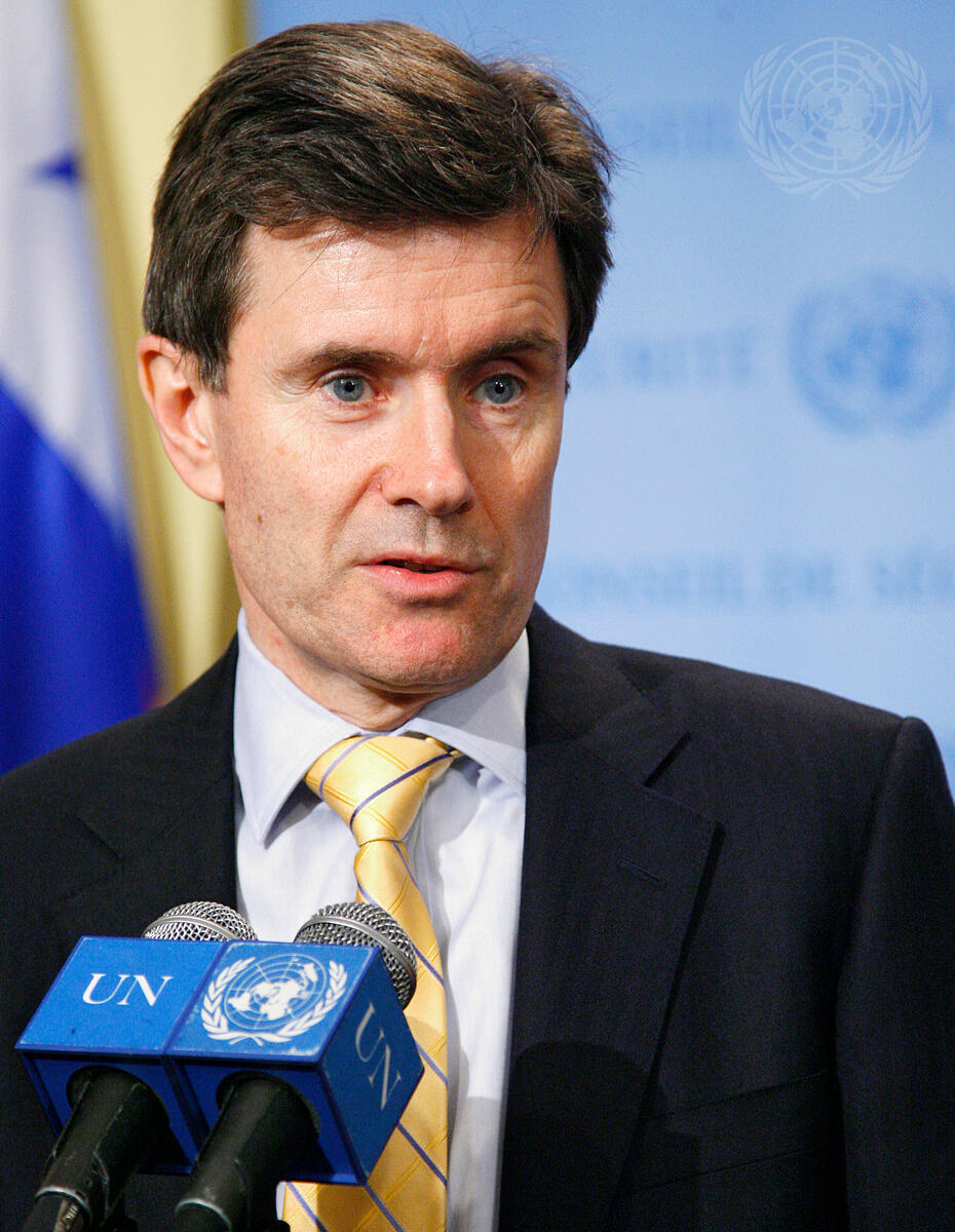 John Sawers, Permanent Representative of the United Kingdom (UK) of Great Britain and Northern Ireland, briefs journalists, following the Security Council consultations on Myanmar.