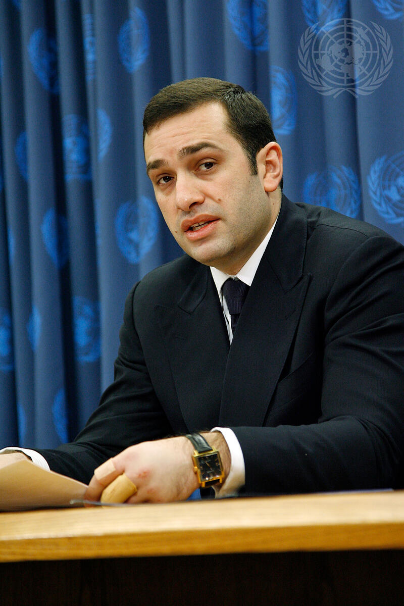Irakli Alasania, Permanent Representative of Georgia to the United Nations, addresses a press conference on the situation in Abkhazia.