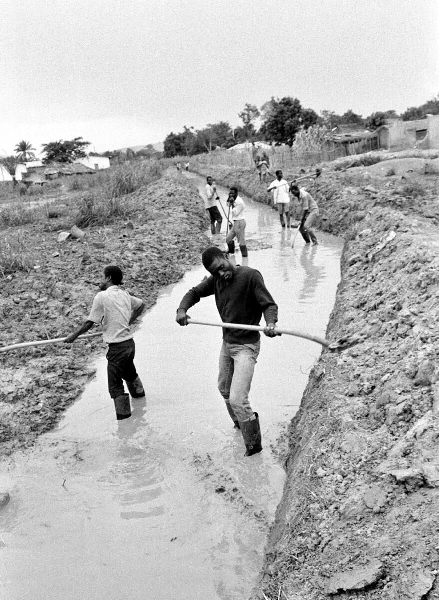 Workmen digging a new drainage canal on the outskirts of Bangui, Central African Republic.