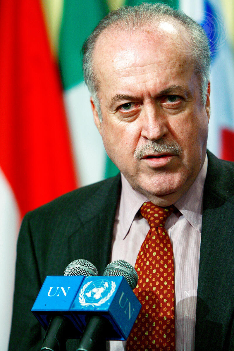 Jorge Urbina, Permanent Representative of Costa Rica to the United Nations, briefs the press, following the Security Council consultations on the current crisis in the Middle East.