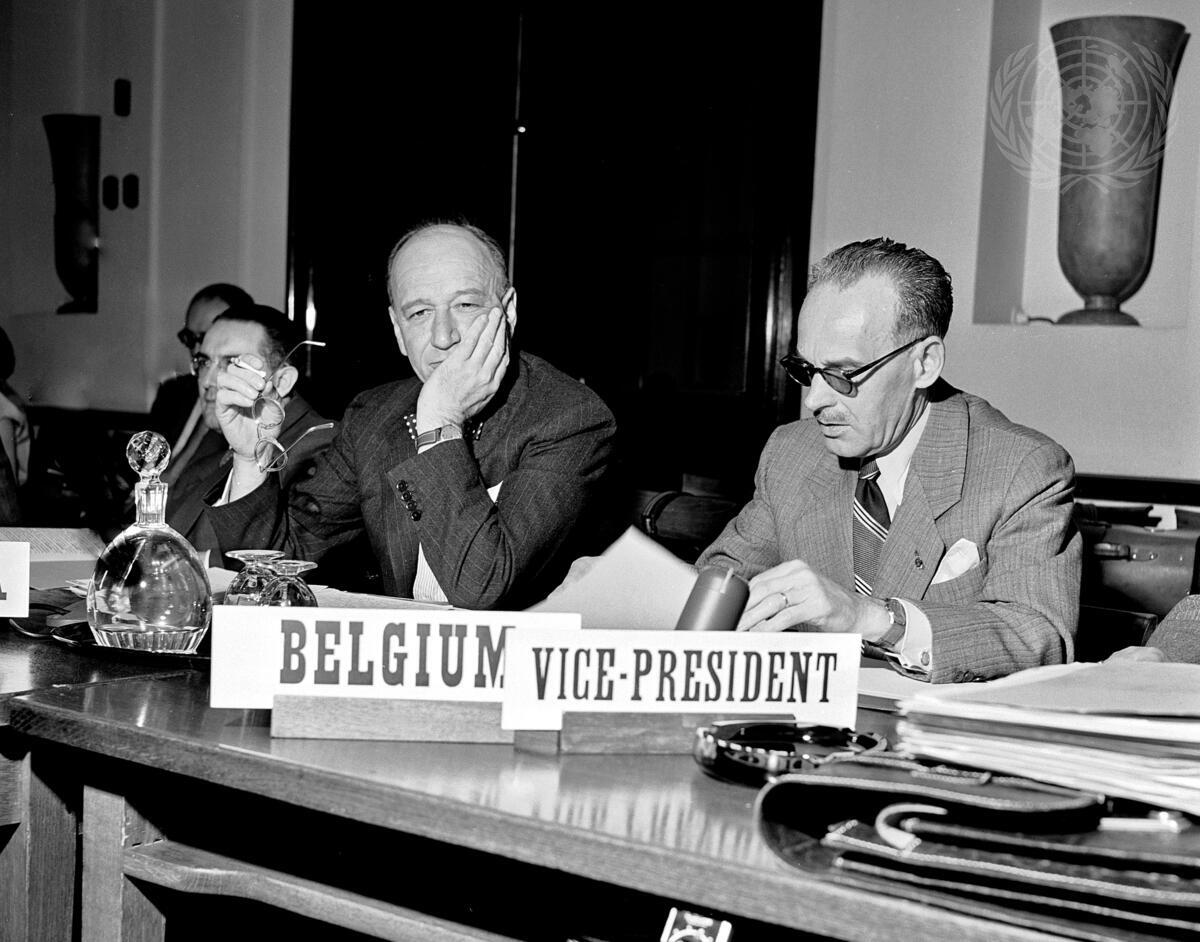 Caption Description The Conference of Plenipotentiaries on the Status of Refugees and Stateless Persons opened in the Palais des Nations, at Geneva, on July 2, 1951. Seen here are: Mr. L.G. Chance (left), of Canada, and Mr. A. Herment, of Belgium, elected First Vice-President of the Conference.