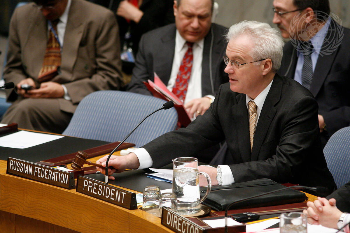 Vitaly Churkin, Permanent Representative of the Russian Federation to the United Nations and President of the Security Council for March, chairs a Council meeting considering the threats to international peace and security caused by acts of terrorism.