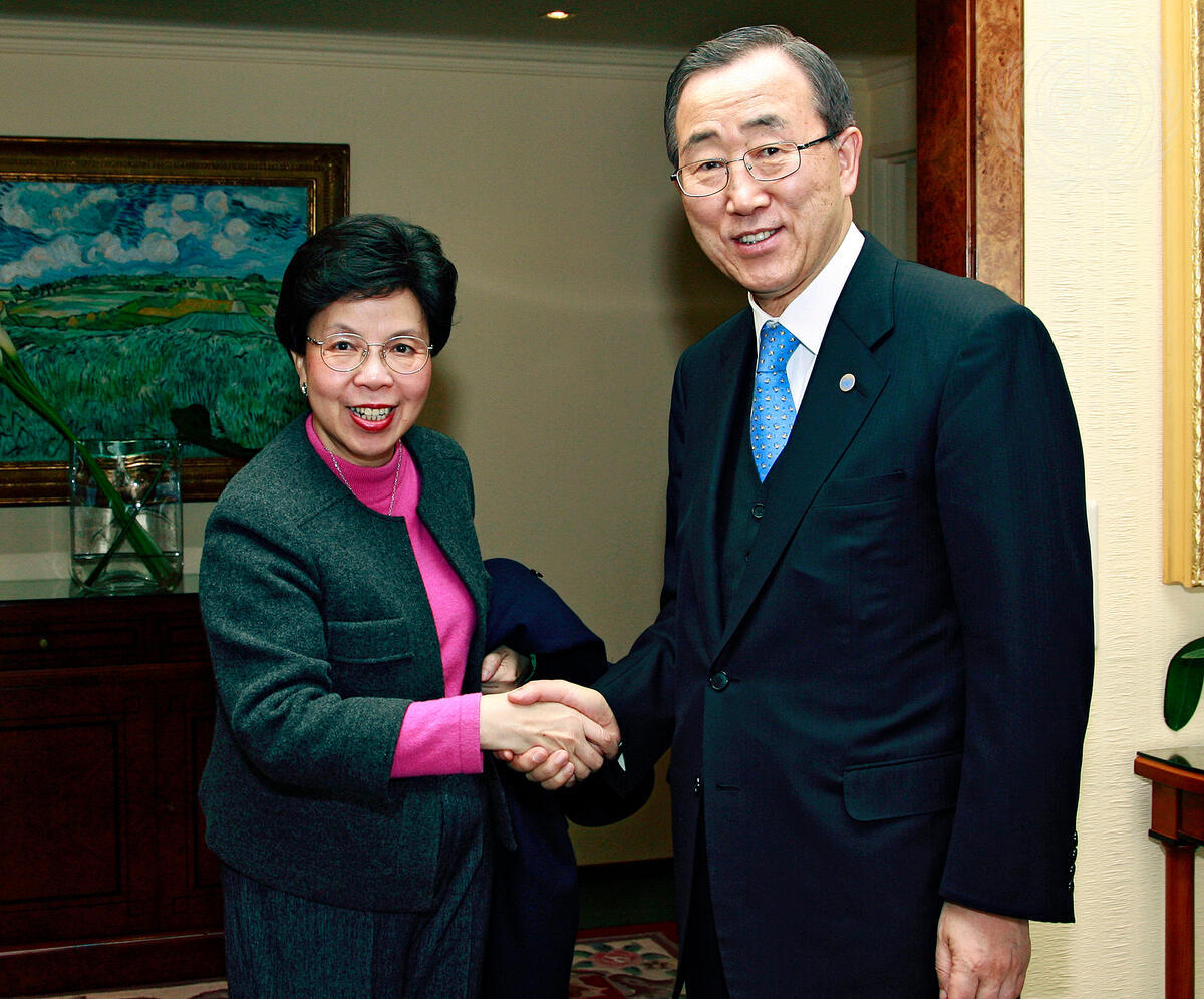Secretary-General Ban Ki-moon (right), meets Margaret Chan, Director General of the World Health Organization (WHO), in Geneva, Switzerland.