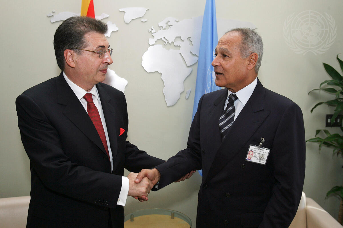 General Assembly President Srgjan Kerim (left), meets with Ahmad Aboul Geit, Minister for Foreign Affairs of Egypt, at UN Headquarters in New York.